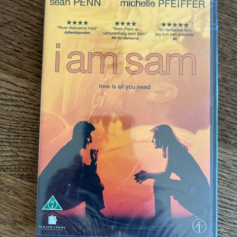 New Line Platinum Series I Am Sam DVD featuring Sean Penn and Michelle Pfeiffer. The film is a drama centered on a father-daughter relationship, with a runtime of approximately 132 minutes. The DVD includes special features such as commentary, deleted scenes, and a documentary.