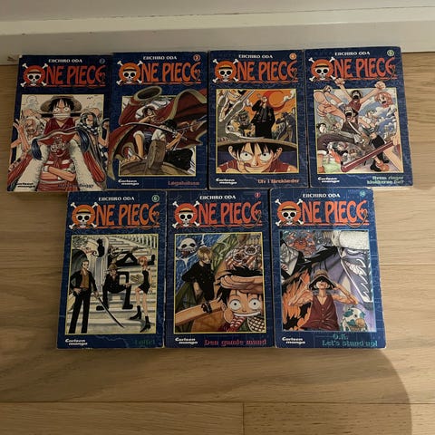 Eiichiro Oda One Piece manga volume 1. Indeholder den første del af serien med hovedpersonen Monkey D. Luffy. Mangaen er på engelsk og er i paperback format.