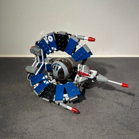 Sættet er i god stand uden misfarvninger – dog er ét af klistermærkerne lidt krøllet i hjørnet. Det er nyligt skilt ad og optalt, og alle dele medfølger, inkl. alle figurer. Original kasse medfølger ikke, men manualen er med og i god stand. Kan afhentes i Kbh S eller sendes på købers regning.