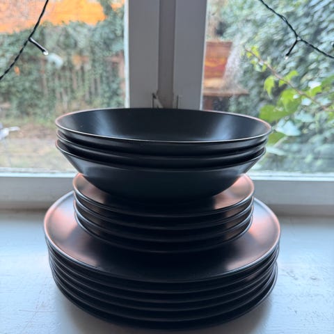 Dejlig enkel IKEA set tallerkener (sort/ mørkegrå)