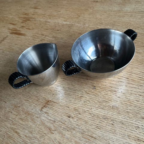 Forskellige retro skåle og fad med teaktræ håndtag sælges: