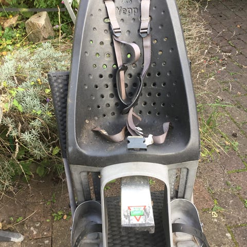 Yepp Maxi med tre beslag og nøgle, så der er beslag til både mors, fars og bedstemors cykel. Der medfølger også nøgle til sædet, så det kan låses fast på cyklen. Rigtig fin stand, alle dele medfølger.