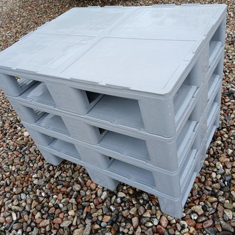 Plastpaller 110x110 cm, sorte, brugt til søfragt. Perfekte til opbevaring af brænde og under gulve i camping fortelte. Kan evt. leveres billigt.