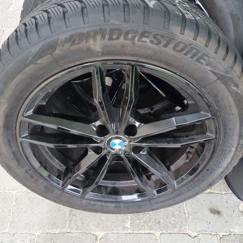 Hej sælger mine alufælge med vinterdæk har siddet på min bmw 330e Et 26 og den er 8.5 x 18 tommer og der er ca 6mm tilbage på fordækkene og 4 mm på bagdækkene