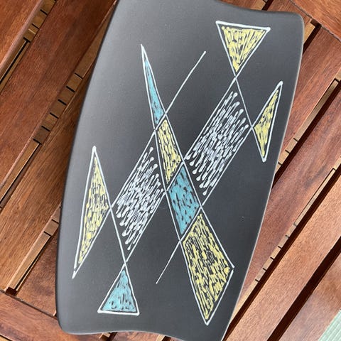 Formen er trekantet/ovalt og meget karakteristisk for Søholms mid-century-produktion.