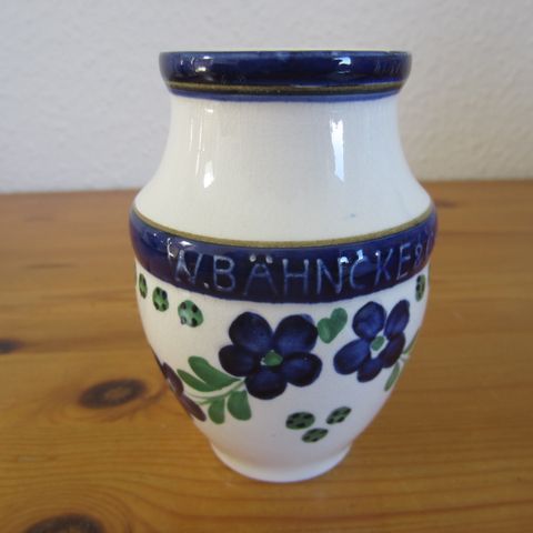 Det er den til venstre, som er til salg: Reklamekrukke for Bäncke sennep - intet stempel, men det var der ikke på disse reklamekrukker, Den har fået et låg, som ikke hører til, men som da ser fint ud til. Ingen skår.