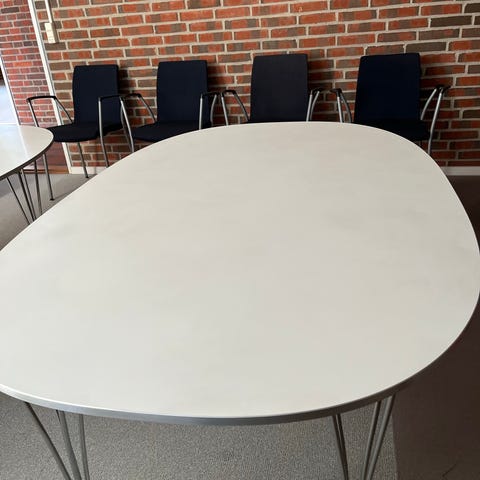 Der sælges et stilrent og funktionelt Piet Hein Elipsebord, perfekt til både hverdag og fest. Bordet er i god stand og kommer med to tillægsplader, som gør det nemt at udvide bordet til større selskaber.