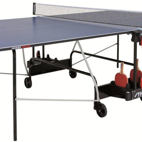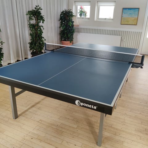 Sponeta Sport Line bordtennisbord med 19 mm blå specialplade med flere slidlag og underliggende sort profilramme i 36 mm. Bordet er udstyret med stabilt stål understel og 125 mm dobbelt hjul, som giver optimal manøvreringsevne. Net medfølger.