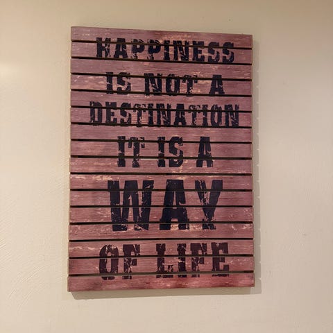 Et langt og rustikt træskilt med gode leveregler fra NiceWall.
