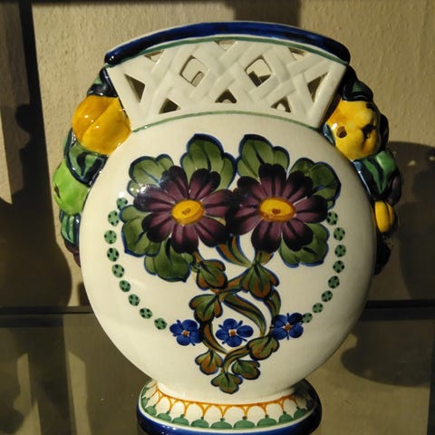 Aluminia vase med blomster og reparation se billeder pris 700 kr kan sendes forsvarligt svare kun på sms eller ring på tlf nr 60661540 se også mine andre annoncer og ved køb af mere finder vi en god pris