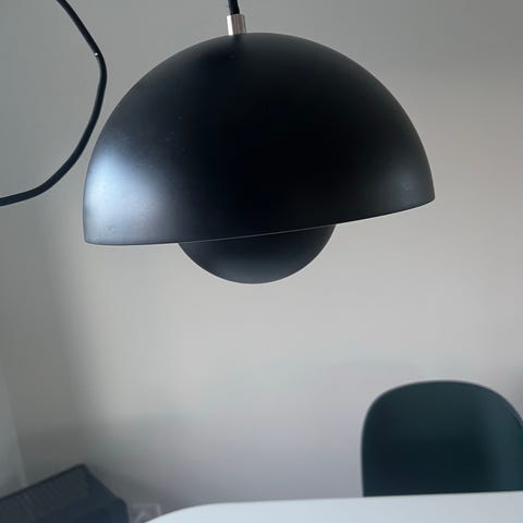 2 Flowerpot pendler i børstet stål. Kommer med ca 2,5 meter stofledning i sort.
