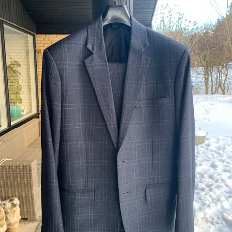 Skræddersyet jakkesæt benyttet 1 gang. Består af vest, jakke (med Brøndby BIF tekst i) samt bukser. Er ikke renset efter den 1 gangs brug. Manden er 182 cm høj, vægt 110 kg. Sender ikke.