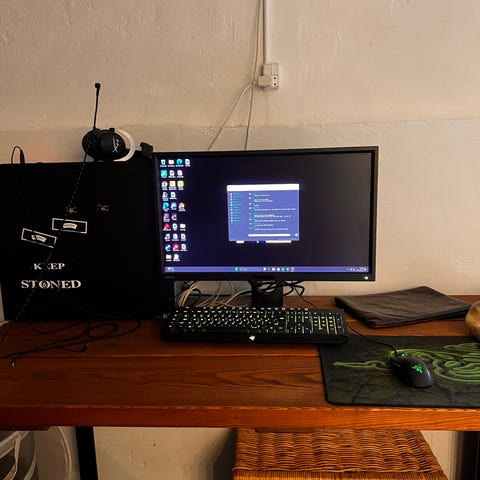 Hvad medfølger : Ben Q skærm, steelSeries APEX tastatur, SteelSeries mus, stationær, arozzi gamingbord