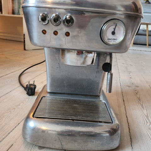 Ascaso Dream Arc Basic Espressomaskine og Ascaso Espresso coffee Grinder. Flot sort maskine med lækre vippeknapper og mælkeskummer.