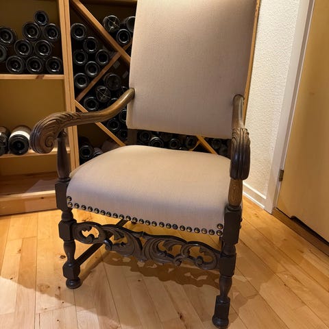 Den ligner denne her stol: https://www.robinwheatleyantiques.co.uk/antique/charles-ii-walnut-armchair/