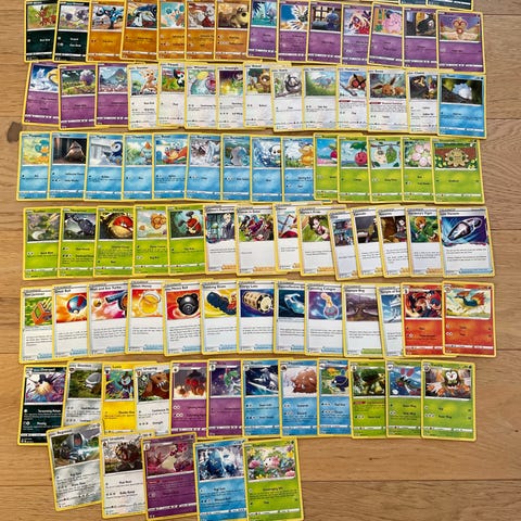 Pokémon kort 200 forskellige + ekstra energikort og lidt kortlommer. Der er 160 basiskort og 40 mere sjældne kort (udviklinger og rare).