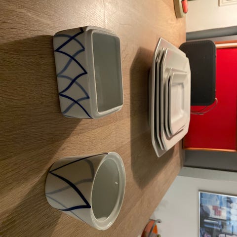 Harlekin sennepskrukke Dan Ild 40 - helt OK med låg og ske. 9 cm og glas smørboks 17 cm