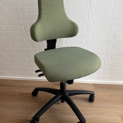 Kontorstol, kvalitetsstol, formentlig RBM / Rabami 700 serie, Poleret alu, sort ruskind, alt virker.