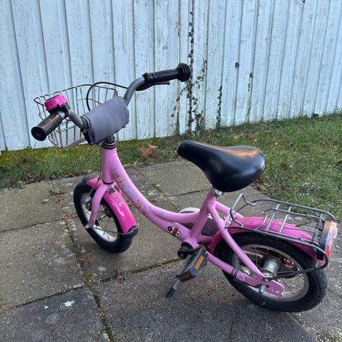 Trek børnecykel med 12 tommer hjul i lyserød farve. Passer til pige fra 3-5 år. Cyklen er udstyret med et barnesæde / dukke bagpå. Send SMS 53781221