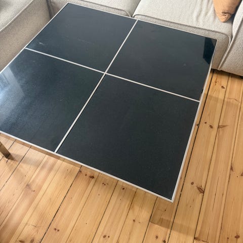 Meget velholdt slebet granit og blank stål. Tungt og robust sofabord som er nemt at holde.