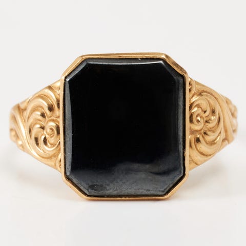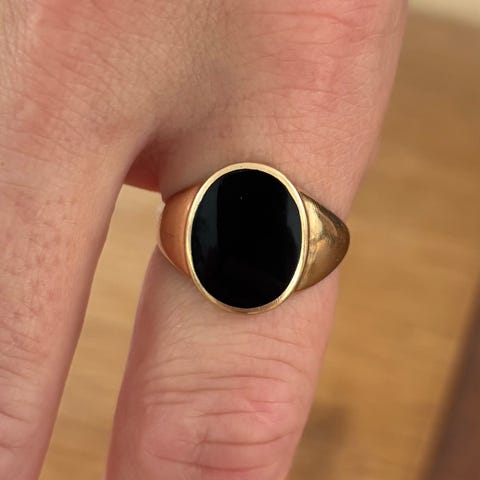 Signetring i 14 kt guld med hæmatit – str. 59–60