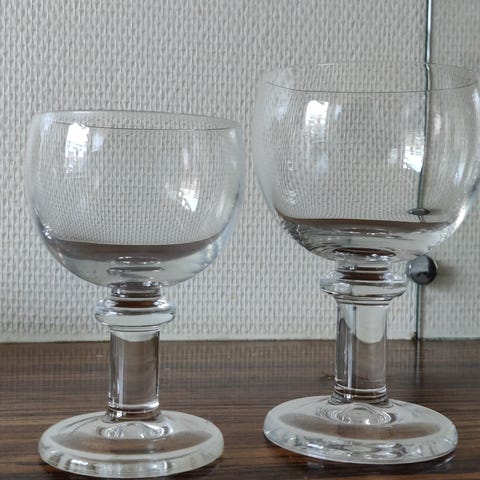 12 rødvinsglas, 11 hvidvin samt 11 portvinsglas i god kraftig kvalitet designet af Per Lütken i 1976 på Kastrup-Holmegaard glasværk
