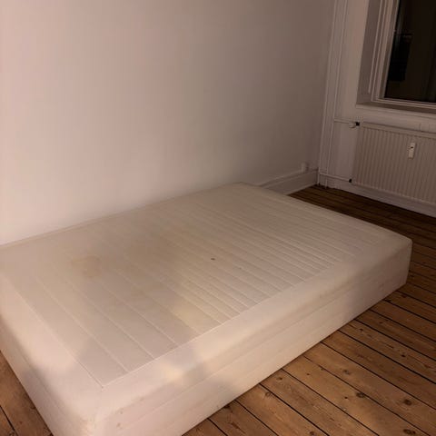 Fin boxmadras - med brugsspor dog uden skjolder el. lign. Meget komfortable at ligge på. Kan hentes gratis på Vesterbro.
