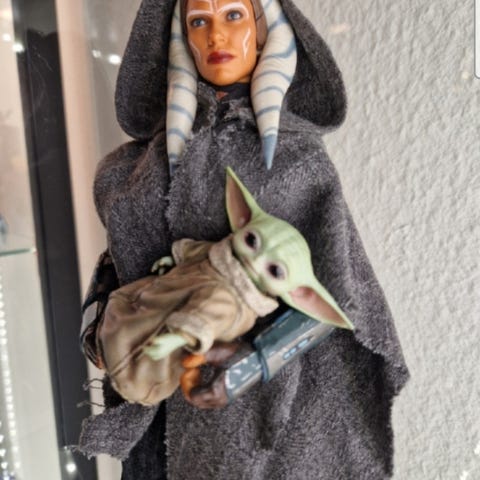 Star Wars Mandalorian Grogu legetøj i grøn farve. Denne figur er en del af den populære Mandalorian-serie og er designet med detaljeret beklædning. Perfekt til fans af serien og som samlerobjekt. Velegnet til børn og voksne.