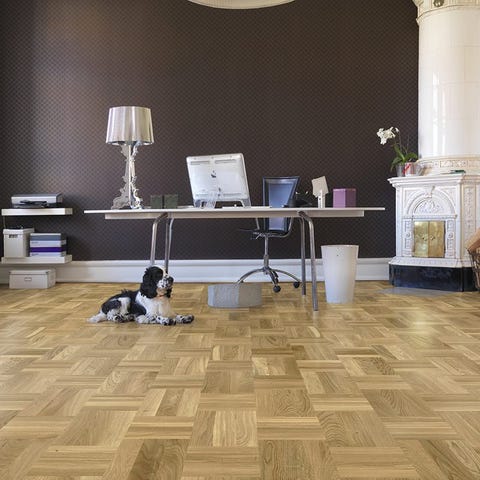 Tarkett Novoga Plus Sildeben parketgulv i egetræ. Gulvet er designet i sildebensmønster og leveres i pakker. Egnet til bolig- og erhvervsbrug, hvor der ønskes et klassisk og slidstærkt trægulv.