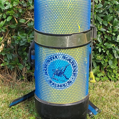 Flasken skal trykprøves og regulator serviceres.
