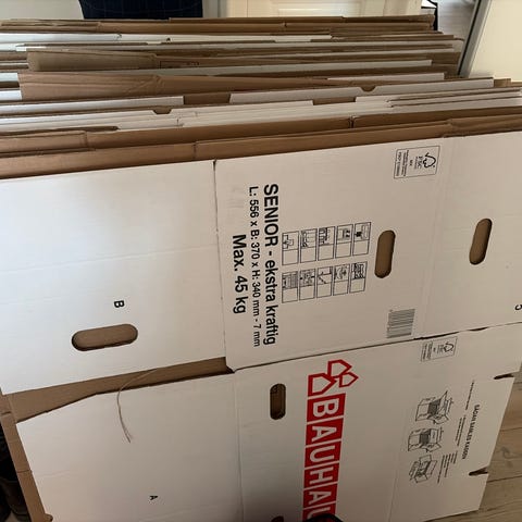 Aflevering af brugte flyttekasser, se billeder for mål.