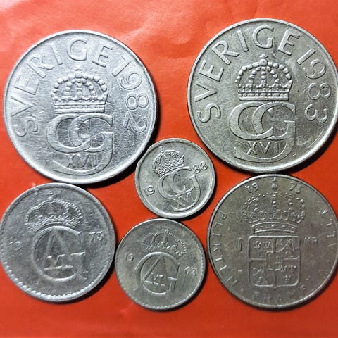 Skandinavien Mønter SVERIGE 4 x 5 KRONER 5 KRONOR + 4x 1 KRONA + 2x 5 +2x 10 ØRE