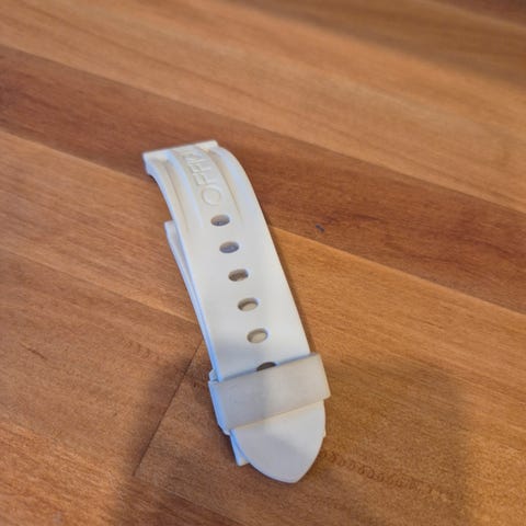 Sælger denne sorte OEM Panerai gummirem. Er i 24/22 og standard længde. Kommer uden keeper, men har du en alm. Panerai gummirem, kan du benytte dem. Sidder mere rundt på håndleddet end deres alm. gummirem
