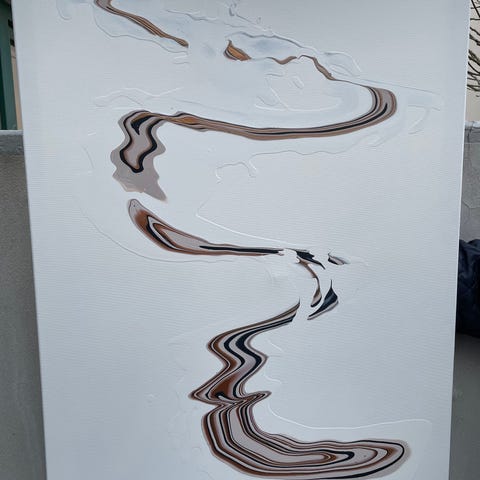 Pres er et Abstrakt Maleri med sort, hvid og rød farvetema. Maleriet er på lærred og har en rektangulær form (35x70 cm). Signeret af ny kunstneren ChromeArt.