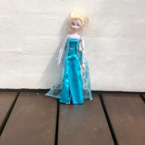 Elsa dukke med langt lyst hår og blå kjole. Dukken er lavet i plast.