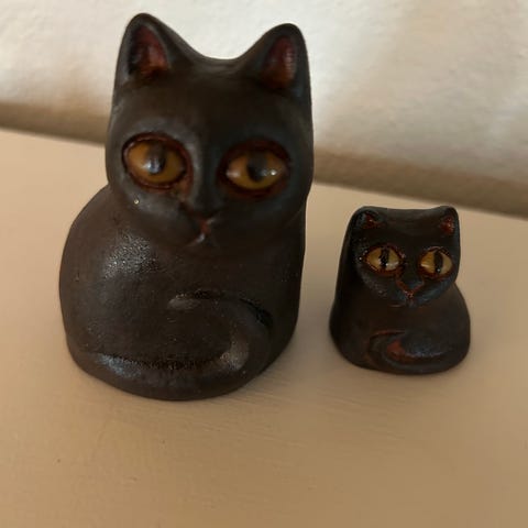 Estey Meier Keramik kattefigur sæt bestående af to sorte kattefigurer. Fremstillet i keramik med detaljeret udformning. Velegnet som dekorative elementer i hjemmet.