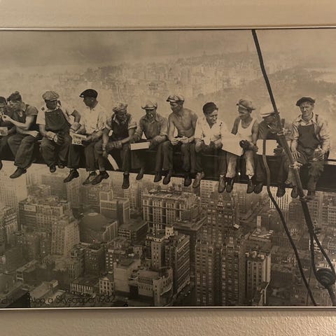 Sælger dette billede m. ramme (plakat) “Lunch atop a skyscraper”, hvor elleve mænd spiser frokost på en stålbjælke på 69. etage af Rockefeller Center.