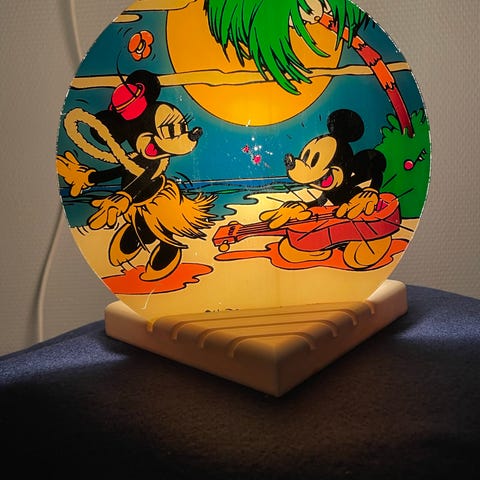 Philips Mickey Mouse bordlampe med LED-lys, 270 lumen. Lampen har en højde på 230 mm, bredde på 180 mm og dybde på 180 mm. Den har energiklasse A++, varm hvid lysfarve og en kontakt til tænd/sluk. Egnet til børneværelser.