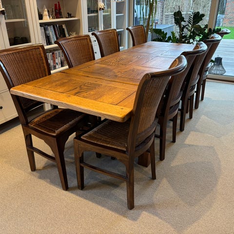 Spisebord i afsyret eg med 6 tilhørende stole