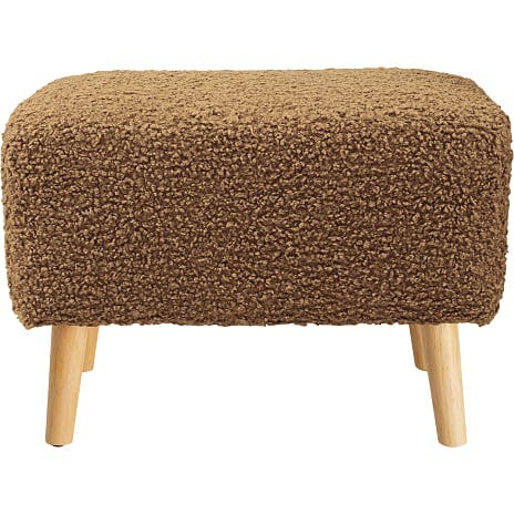 Pelle fodskammel i grønt teddy stof og ben i gummitræ. Fodskamlen måler 43,5 cm i højden, 61 cm i bredden og 43 cm i dybden.