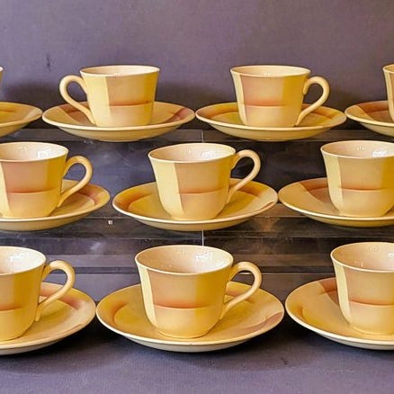 CERANORD eksklusivt porcelænsservise 'Bird of Paradise' i Creme med flerfarvet blomsterdesign og guldkant, Regency-stil, ca. 1950–1960, i fremragende stand. Klik på den blå "gå til varen" knap, for at købe eller byde på denne vare. Den samlede pris vil blive vist inden du afgiver dit bud.