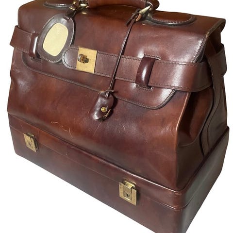 Vintage herre rejsetaske i læder fra The Bridge, et italiensk mærke kendt for sin luksuriøse håndlavede lædervarer, især for brugen af læder.
