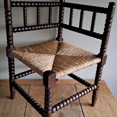 De zitting er lavet af riet.
