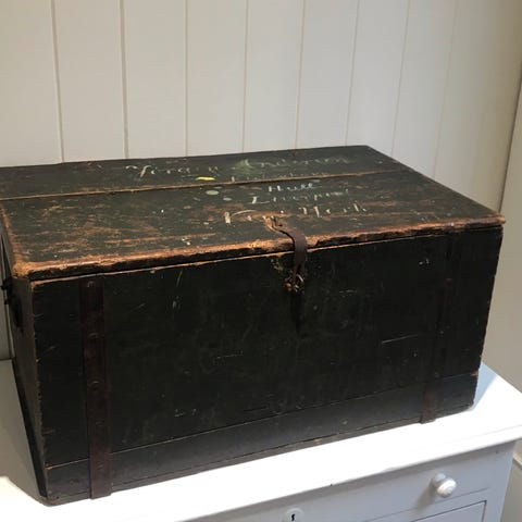 FB rejseskiste i grøn lamineret træ, i god brugstilstand med let slid, mål 80x52x51 cm, låse virker med nøgle, centralt haspe til lås, interiør i originalt papir, robuste sider håndtag, kompakt og bærbar, egnet som garderobe, opbevaringsboks eller showroom/hoteludstilling. Klik på den blå "gå til varen" knap, for at købe eller byde på denne vare. Den samlede pris vil blive vist inden du afgiver dit bud.