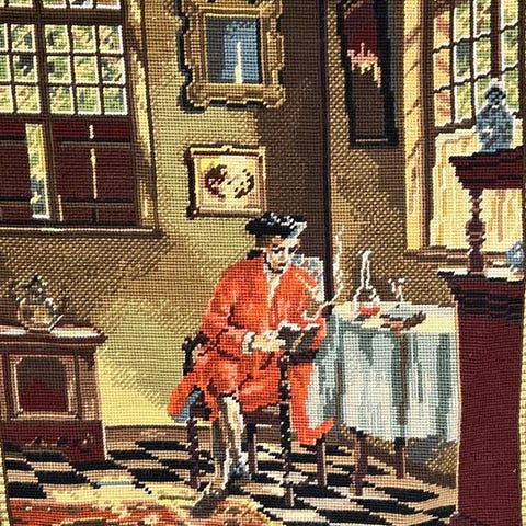 Dette gobelinstof er dedikeret til bogelskere.