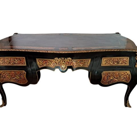 Pragtfuldt sidebord, håndlavet i Frankrig i træ med læderindlæg.