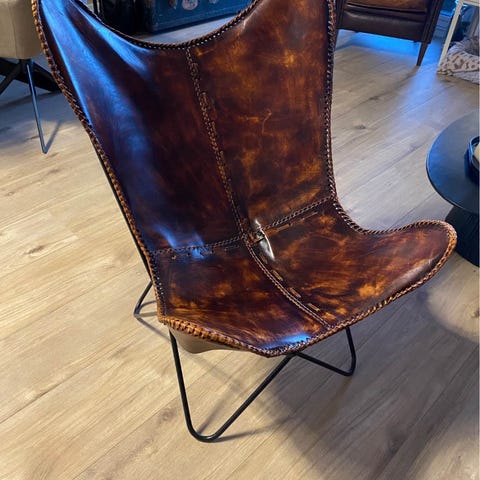 Tilføj et strejf af moderne elegance til dit interiør med denne smukke læder butterfly-stol.