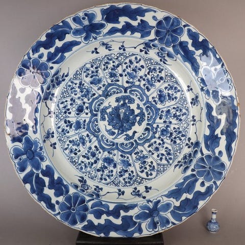 En meget stor kinesisk blå og hvid 'Romance of the Western Chamber'-flise