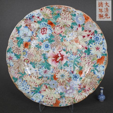 En meget fin kinesisk famille rose guldfisk tallerken