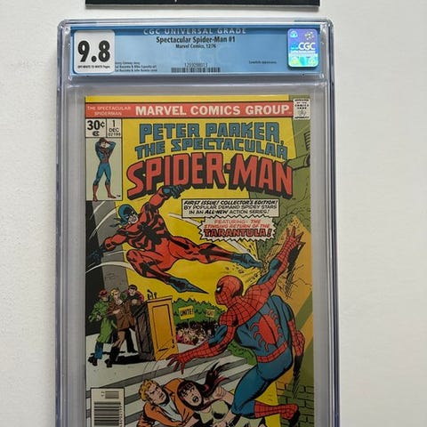 Graderet Spider-Man første udgave tegneserie af Todd McFarlane, Marvel Comics, engelsk, Vol. 1 nr. 1 – Sølvudgave, mint tilstand, CGC 9.8 med Lizard-optræden. Klik på den blå "gå til varen" knap, for at købe eller byde på denne vare. Den samlede pris vil blive vist inden du afgiver dit bud.